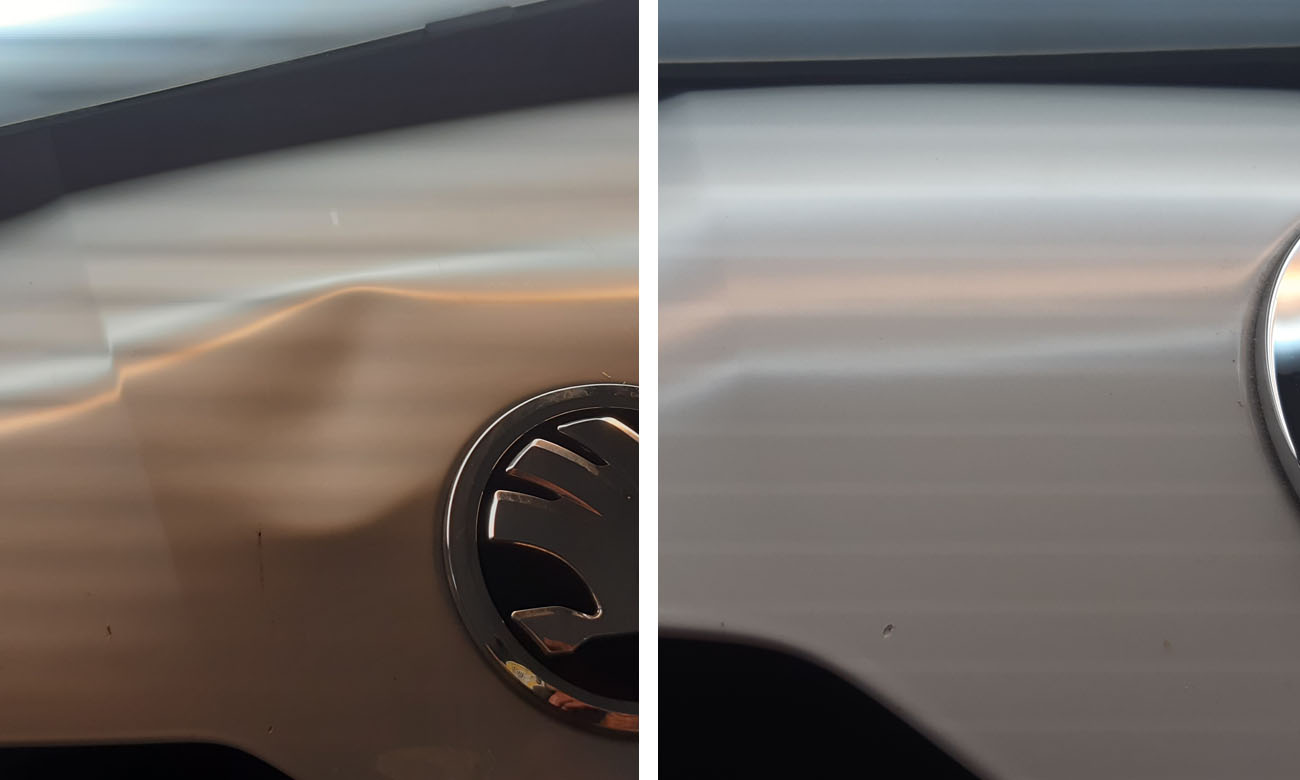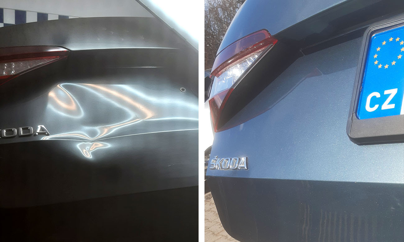 ✔️ Opravou karosérií se zabýváme 20 let. Metodou PDR opravujeme vozy nejen po krupobití téměř 10 let. Máme tudíž bohaté zkušenosti a poradíme si i s extrémním poškozením. Přístupná místa, jako je kapota, blatníky, střecha, dveře se opravují pomocí speciálních háků a odrazové lampy vytlačováním plechu až do původního stavu. Nepřístupná místa, např. sloupky nade dveřmi vytahujeme zvenčí pomocí lepidla a čepů.